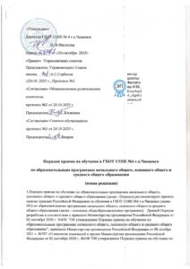 Порядок приема на обучение в ГБОУ СОШ Nº4 г.о. Чапаевск по образовательным программам начального общего, основного общего и среднего общего образования