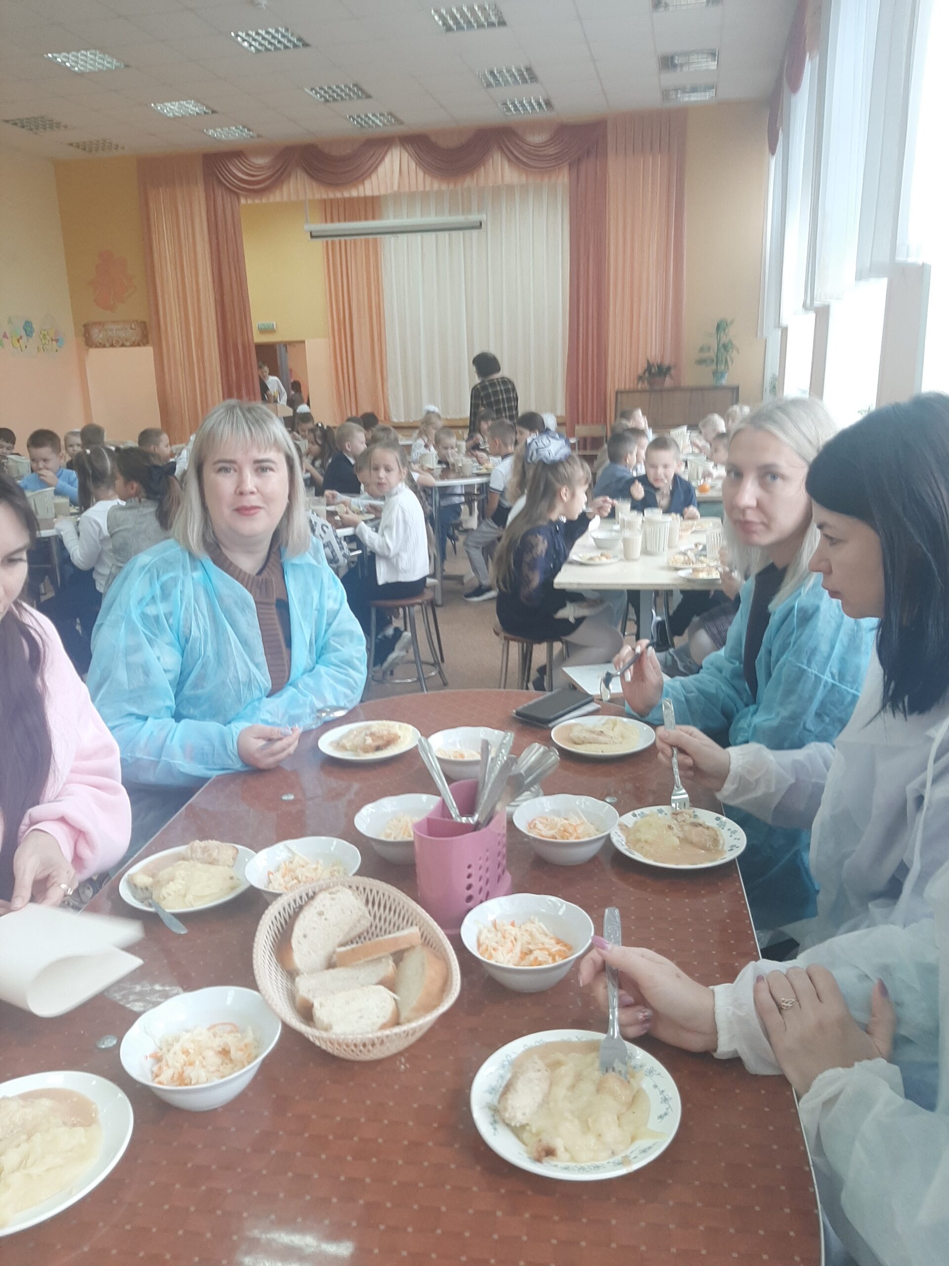 - Род.общественность в рамках контроля за питанием провела рейд в школьную столовую. Родители 1х классов ознакомьтесь с меню, проверили, как кушают дети, сами продегустировали блюда. По итогам составили акт, что все соответствует нормам.